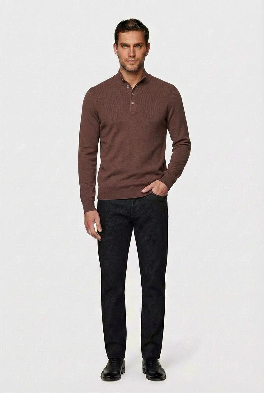 • Джемпер CAIOMARIO полуприлегающего силуэта из высококачественной шерсти мериноса «Merino wool» с добавлением акрила . «Merino wool» это тонкая, мягкая и очень качественная шерсть. Она ценится за свои уникальные свойства, такие как превосходная терморегуляция (сохраняет тепло в холод и прохладу в жару), гигроскопичность (хорошо впитывает влагу, но быстро сохнет) и приятная на ощупь мягкость, благодаря которой она не «колется». Воротник высокая стойка с застежкой на 4 пуговицы из натурального перламутра. Прекрасно сочетается с джинсами и брюками . Стильная и элегантная вещь отлично подойдет для повседневной носки. Выбирайте качество, выбирайте стиль, выбирайте CAIOMARIO!